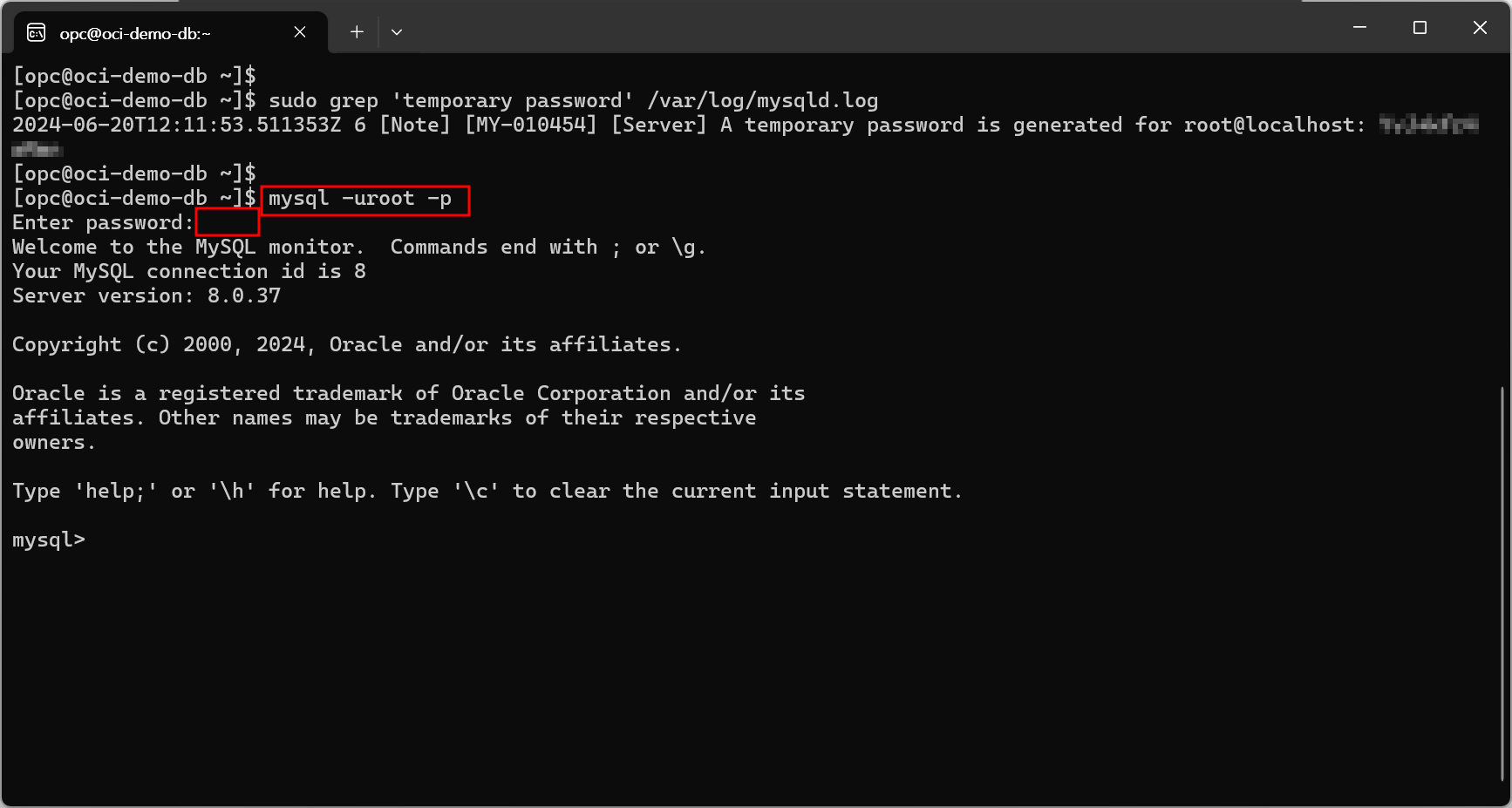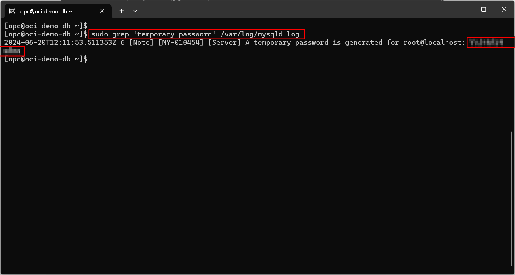 | sudo grep 'temporary password' /var/log/mysqld.log |
