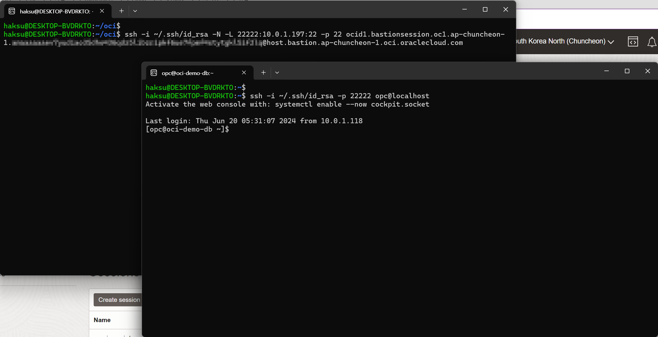 oci-demo-db 가상 머신 인스턴스 원격 접속