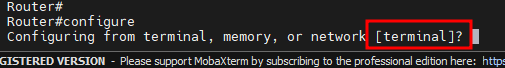 ex) R1#conf {?}