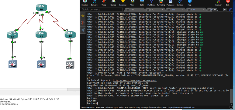 3) (config)# : Global Configuration Mode, 라우터 자체에 영향을 미치는 설정