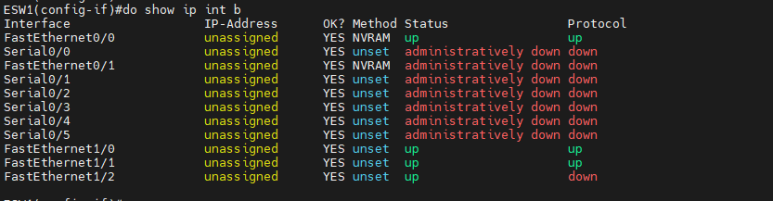 각 스위치에서 fe 0/0, fe 0/1은 라우팅 목적의 모듈을 꽂아 놔서 안됨