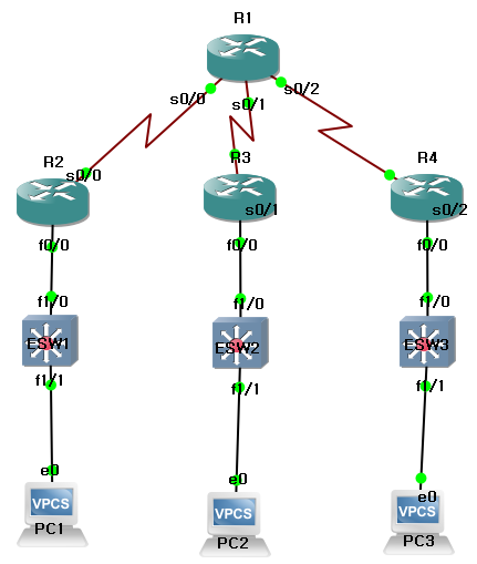 10.0.00/16의 대역을 아래 토폴로지에 맞게 서브넷팅 하여라.
