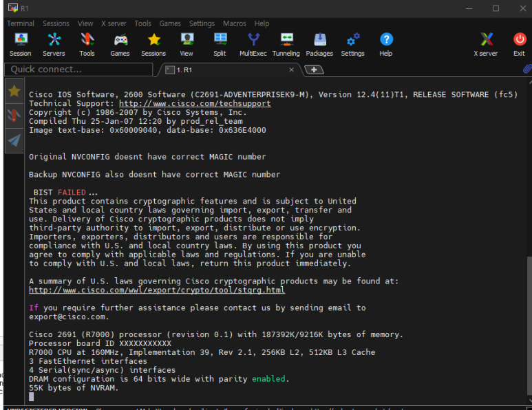 첫 장비 켜고 콘솔 접속했을 때