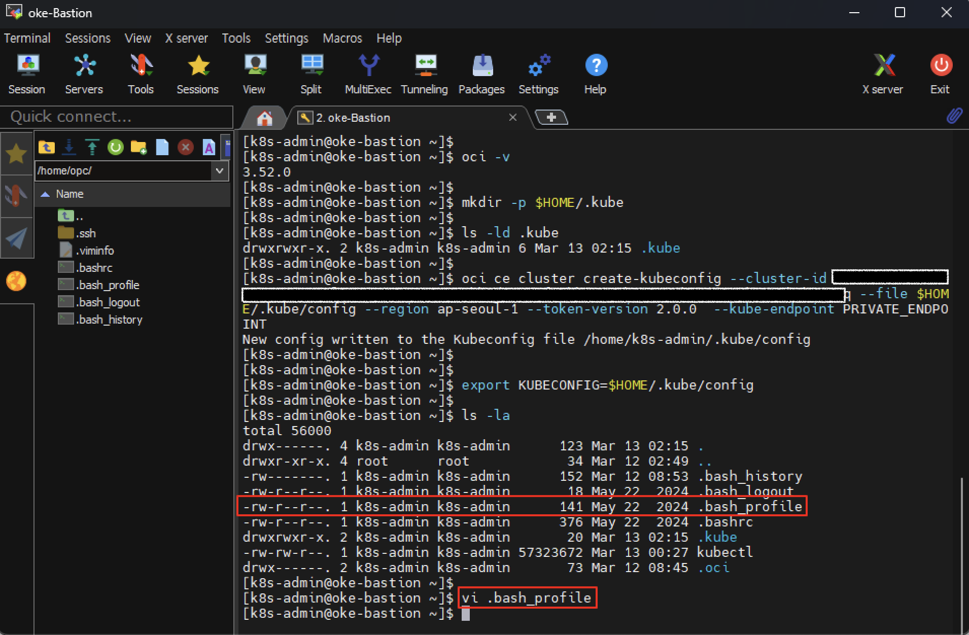 [k8s-admin@oke-bastion ~]$ mkdir -p $HOME/.kube