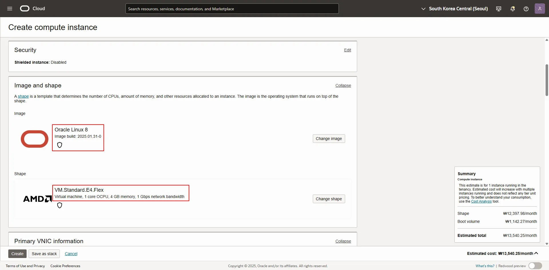 b. Shape : <적절한 Shape 및 OCPU, Memory 선택>