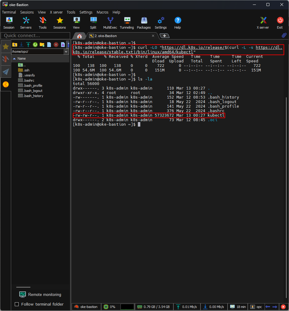 [k8s-admin@oke-bastion ~]$ curl -LO "https://dl.k8s.io/release/$(curl -L -s https://dl.k8s.io/release/stable.txt)/bin/linux/amd64/kubectl"