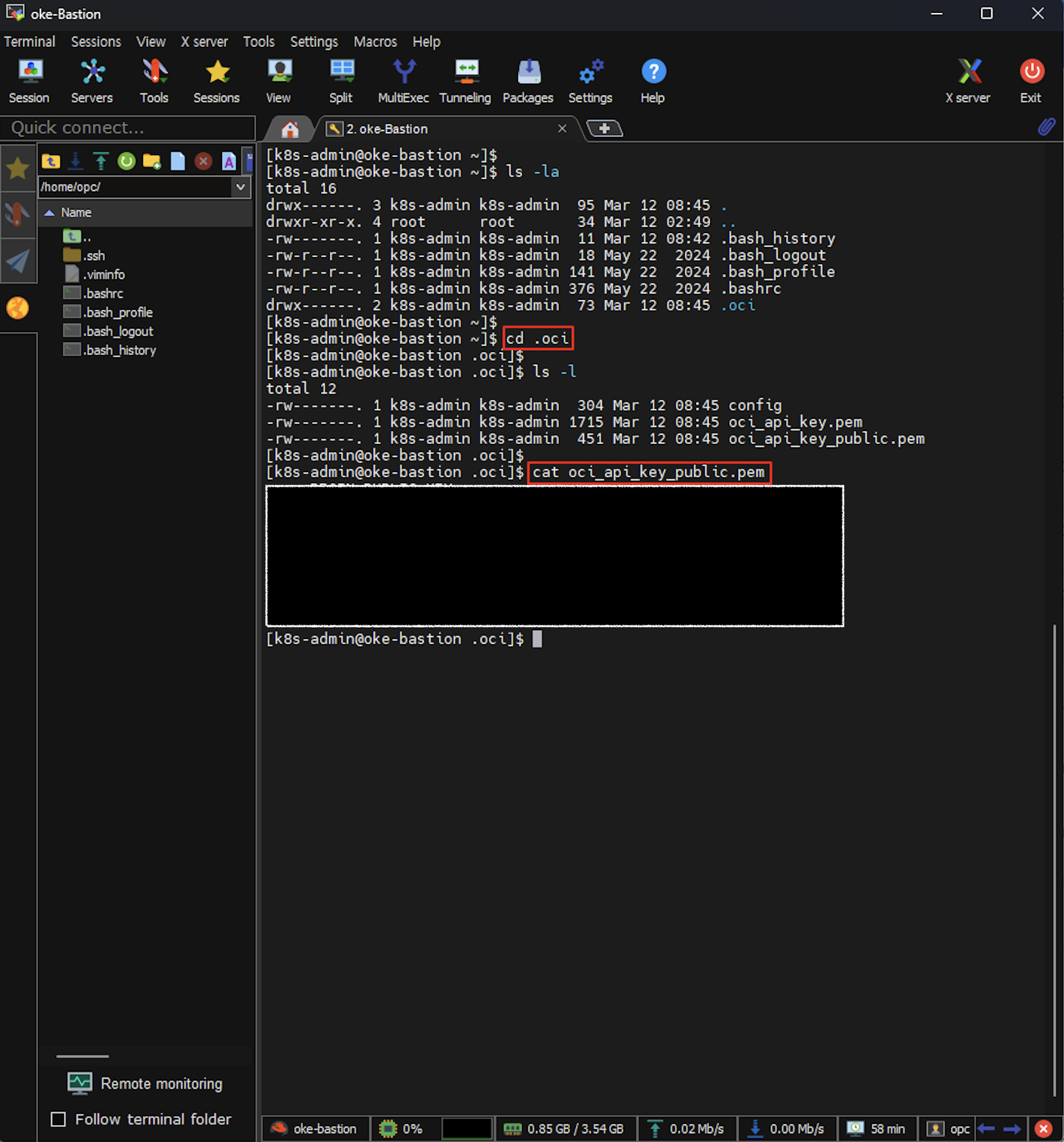 [k8s-admin@oke-bastion ~]# cd .oci