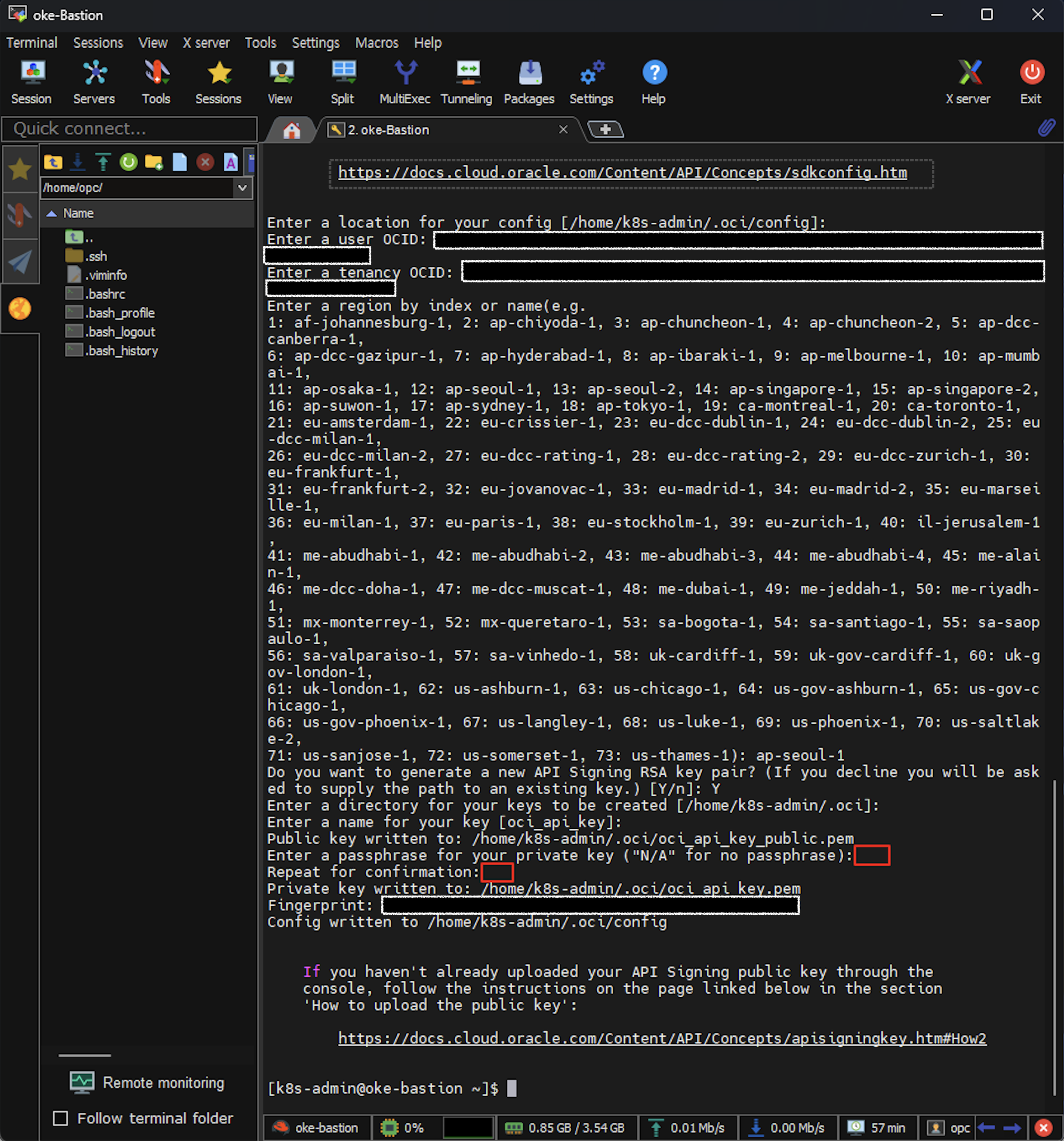 [k8s-admin@oke-bastion ~]$ oci setup config