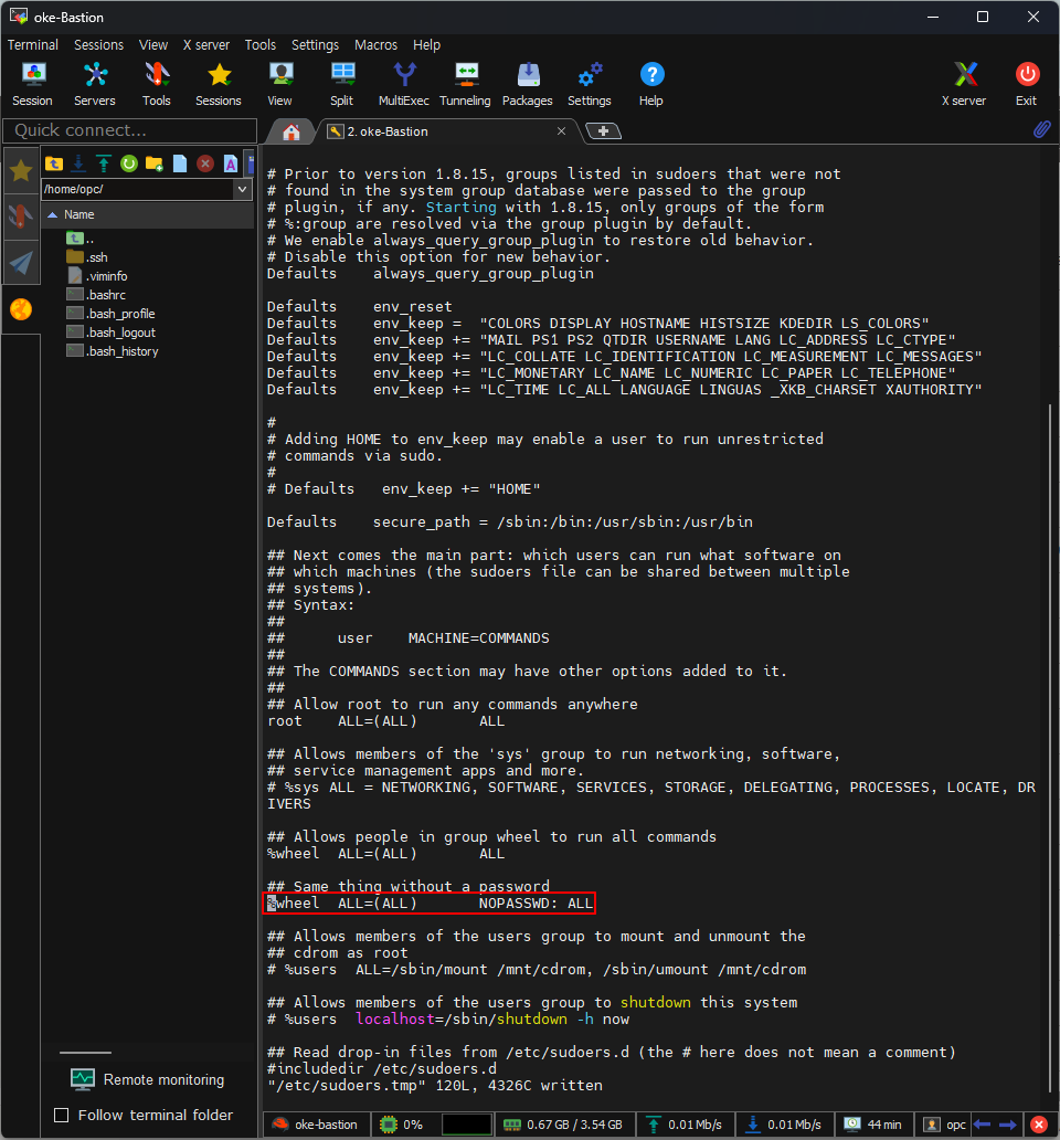 [opc@oke-bastion ~]$ sudo visudo