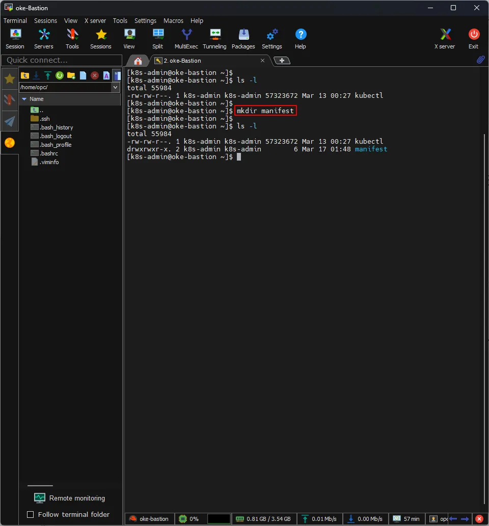 [k8s-admin@oke-bastion ~]$ mkdir manifest