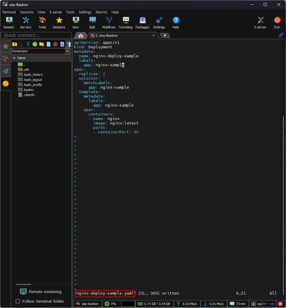 [k8s-admin@oke-bastion manifest]$ vi nginx-deploy-sample.yaml