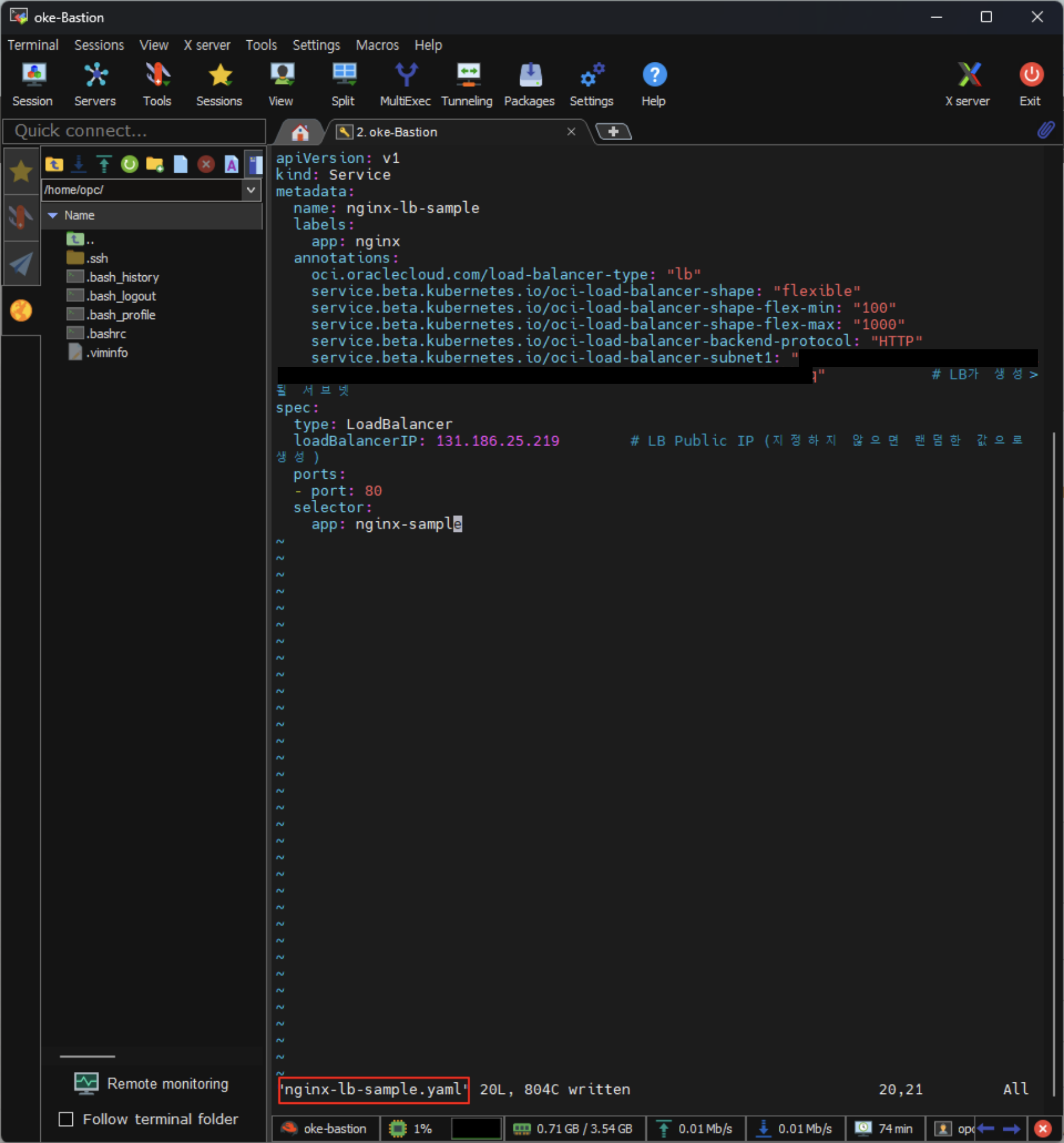 [k8s-admin@oke-bastion manifest ~]$ vi nginx-lb-sample.yaml
