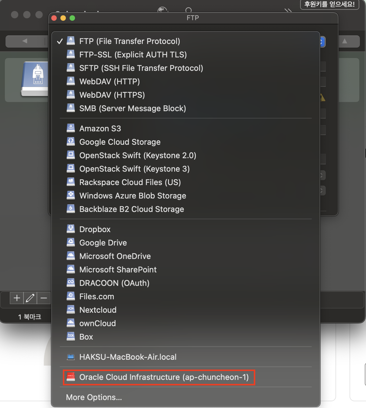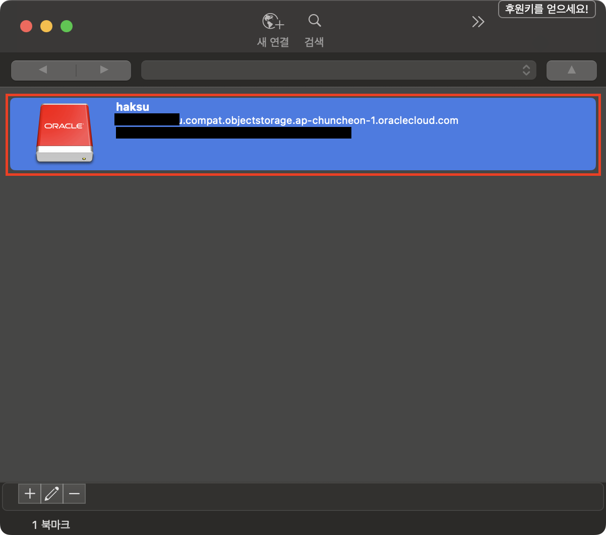 - 서버 : <Object storage namespace>.compat.objectstorage.<Region명>.oraclecloud.com
