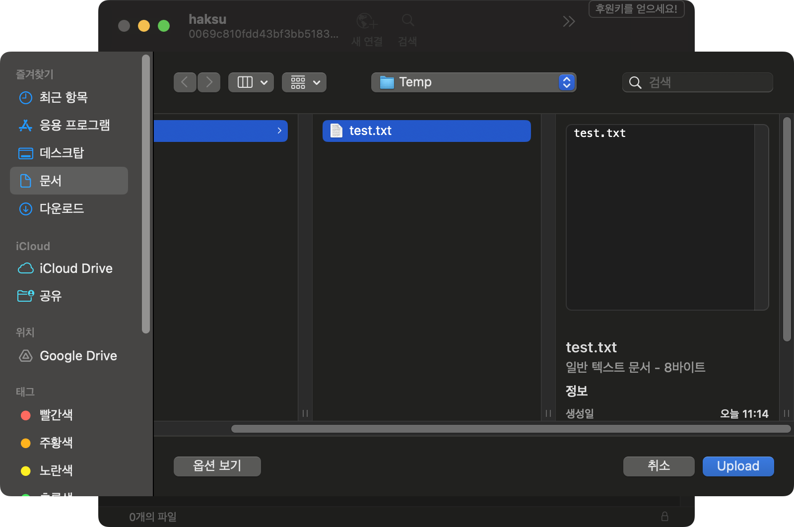 3. 파일 선택 및 Upload 선택