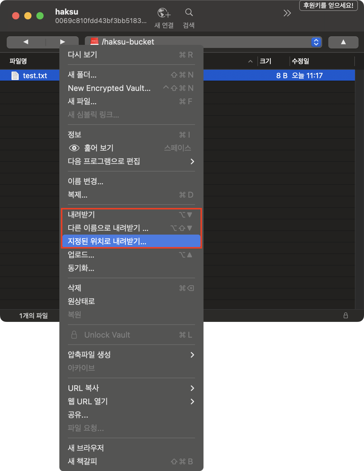1. 해당 파일 선택 후 우클릭
