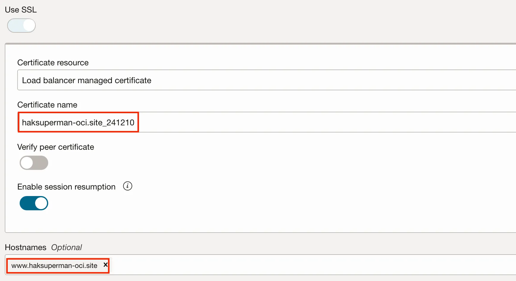 2. Hostname 적용 (생략 가능 → 443리스너들 간의 분기가 있을 때에는 Hostname을 지정하는 것이 권장 사항)
