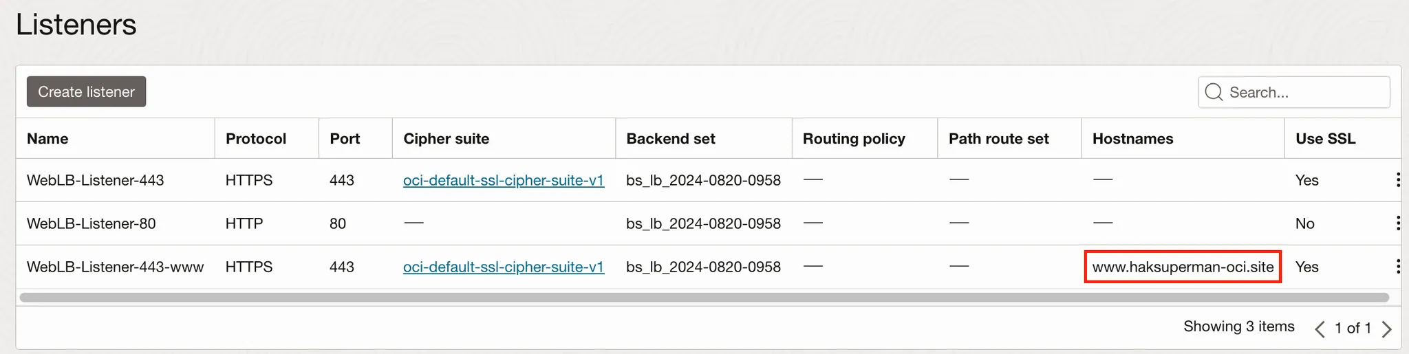 ‘www가 포함되는 Listener’로 접속할 경우, 별도 설정 없이 Backend set으로 포워딩
