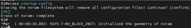 erase startup-config 명령어로 장비 초기화