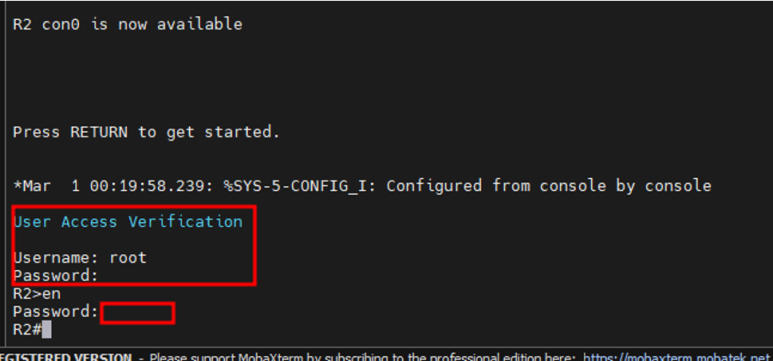 콘솔 포트 보안과 enable secret 설정 후 접속 화면