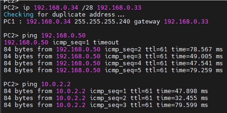 -> unreachable(아예 도달하지를 못함)이 아닌 timeout(도달은 했는데 돌아오지를 못함) 메시지가 출력되는 것