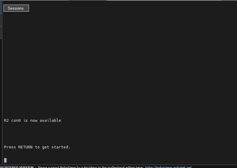 아예 장비와 콘솔 연결이 끊어진 것, user exec 모드에서 exit 쳤을 때의 화면(장비의 콘솔 포트(orPC의 포트)에서 아예 뽑아 버린 것)