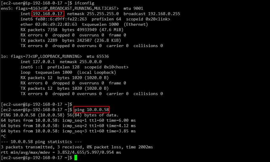 통신은 양 측 라우팅 테이블, 방화벽 설정이 완료된 것을 전제로 진행