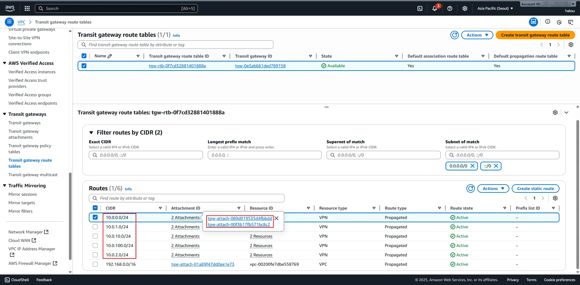 11.2. AWS 측 Transit gateway Route table