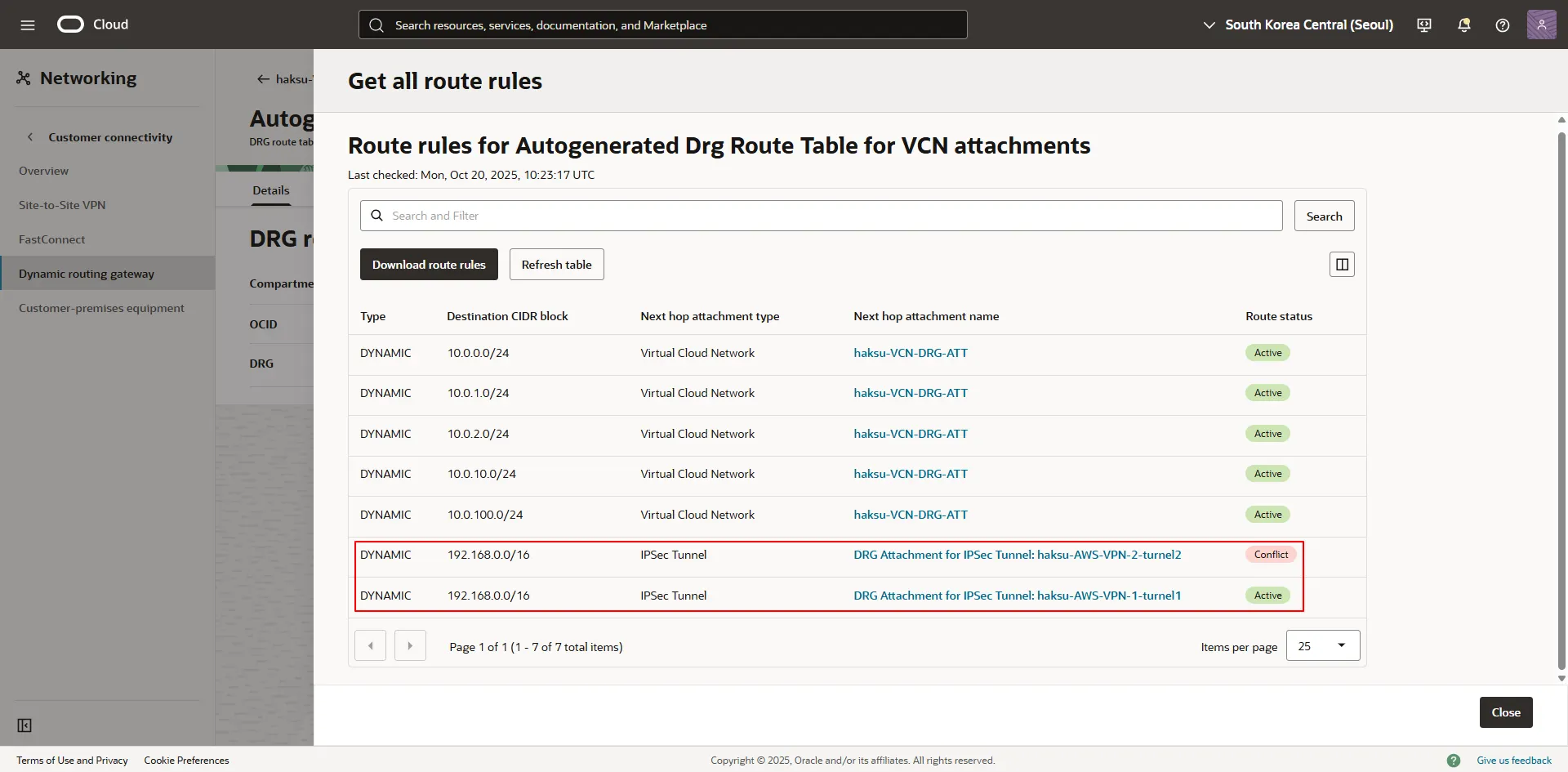 11.1. OCI 측 DRG Route table